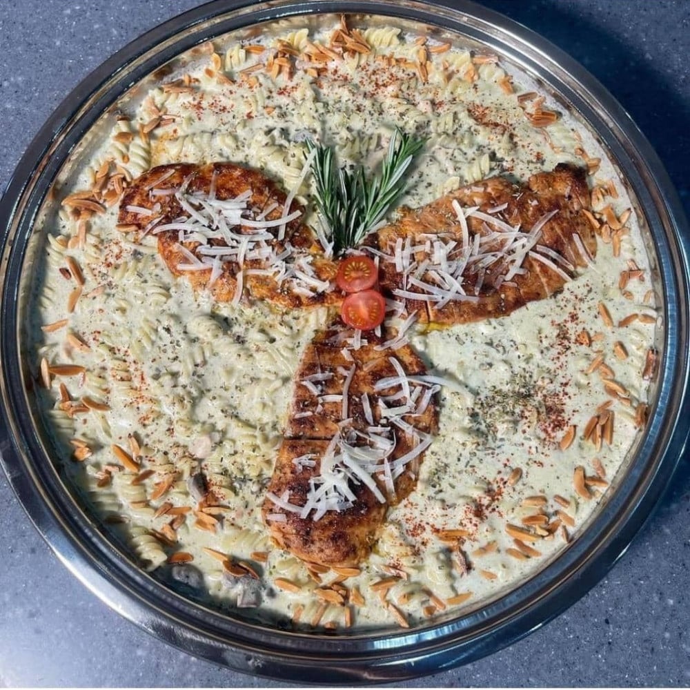 باستا ايطاليه بنكهة البيستو تقدم مع الدجاج المشوي