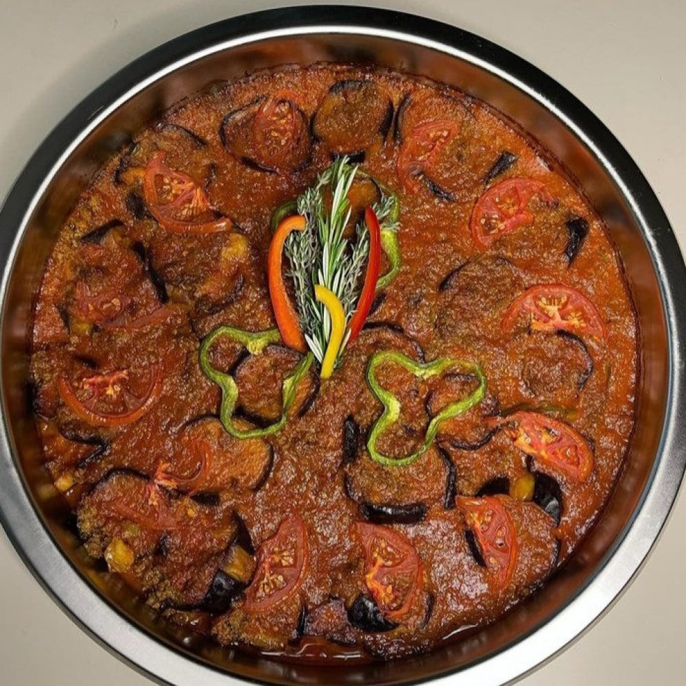 مسقعة بالباذنجان المقلي و اللحم المفروم