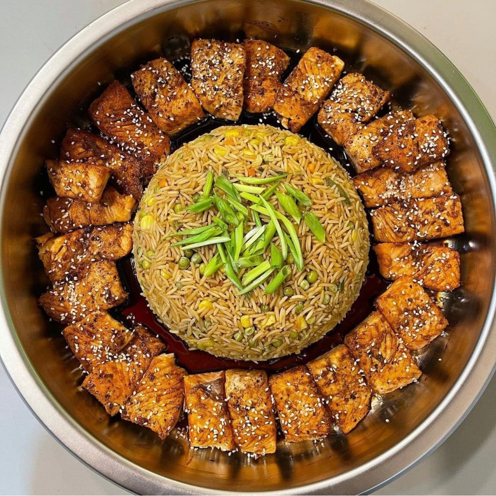 سخان سالمون مشوي بالعسل والرز Grilled salmon