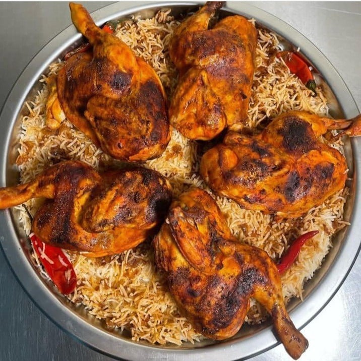 مندي حساوية على أصولها بالحشو والدجاج المحمر
